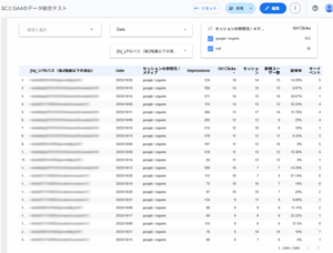 Looker Studioでサーチコンソールと日付補正したGA4のデータを統合してランディングページ×日付のテーブルを作る 2025.11.11